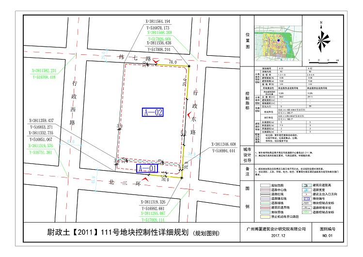 尉政土【2011】111号地块位于尉氏县城北二环与规划行政东路交叉口西北角(拟出让地块为附图中A-01地块),用地性质为二类居住用地。详见附图“尉政土【2011】111号地块控制性详细规划(规划图则)”。