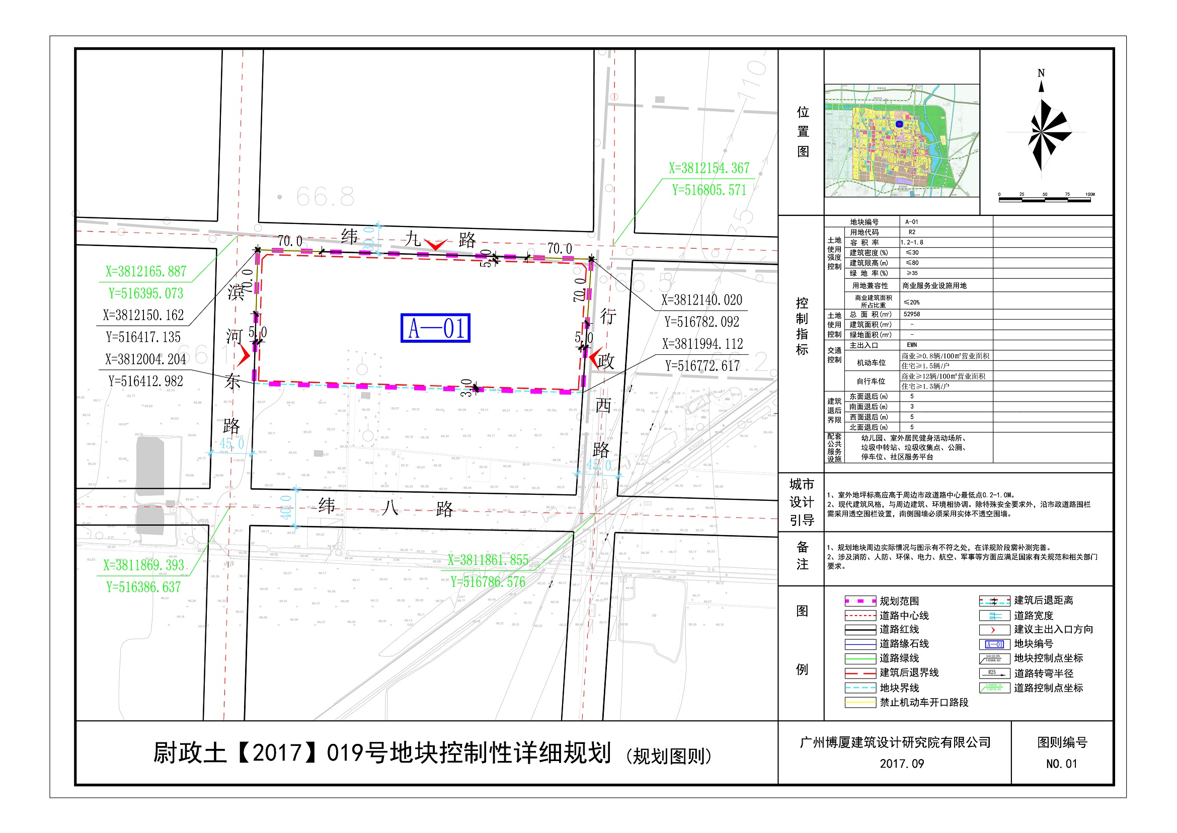 尉政土【2017】019号地块位于尉氏县城滨河东路与规划纬九路交叉口东南角,用地性质为二类居住用地。详见附图“尉政土【2017】019号地块控制性详细规划(规划图则)”。