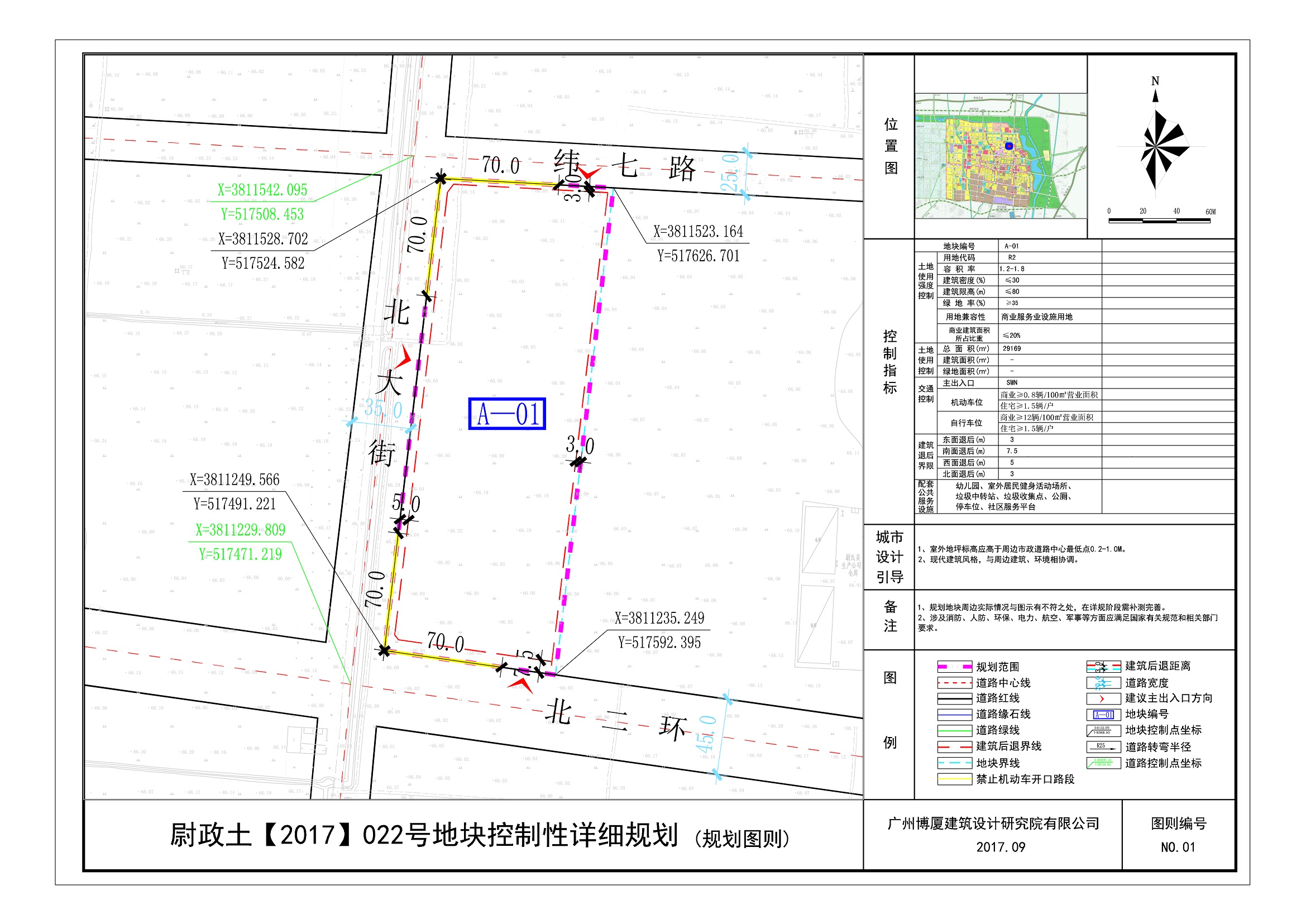 尉政土【2017】022号地块位于尉氏县城北二环与北大街交叉口东北角,用地性质为二类居住用地。详见附图“尉政土【2017】022号地块控制性详细规划(规划图则)”。