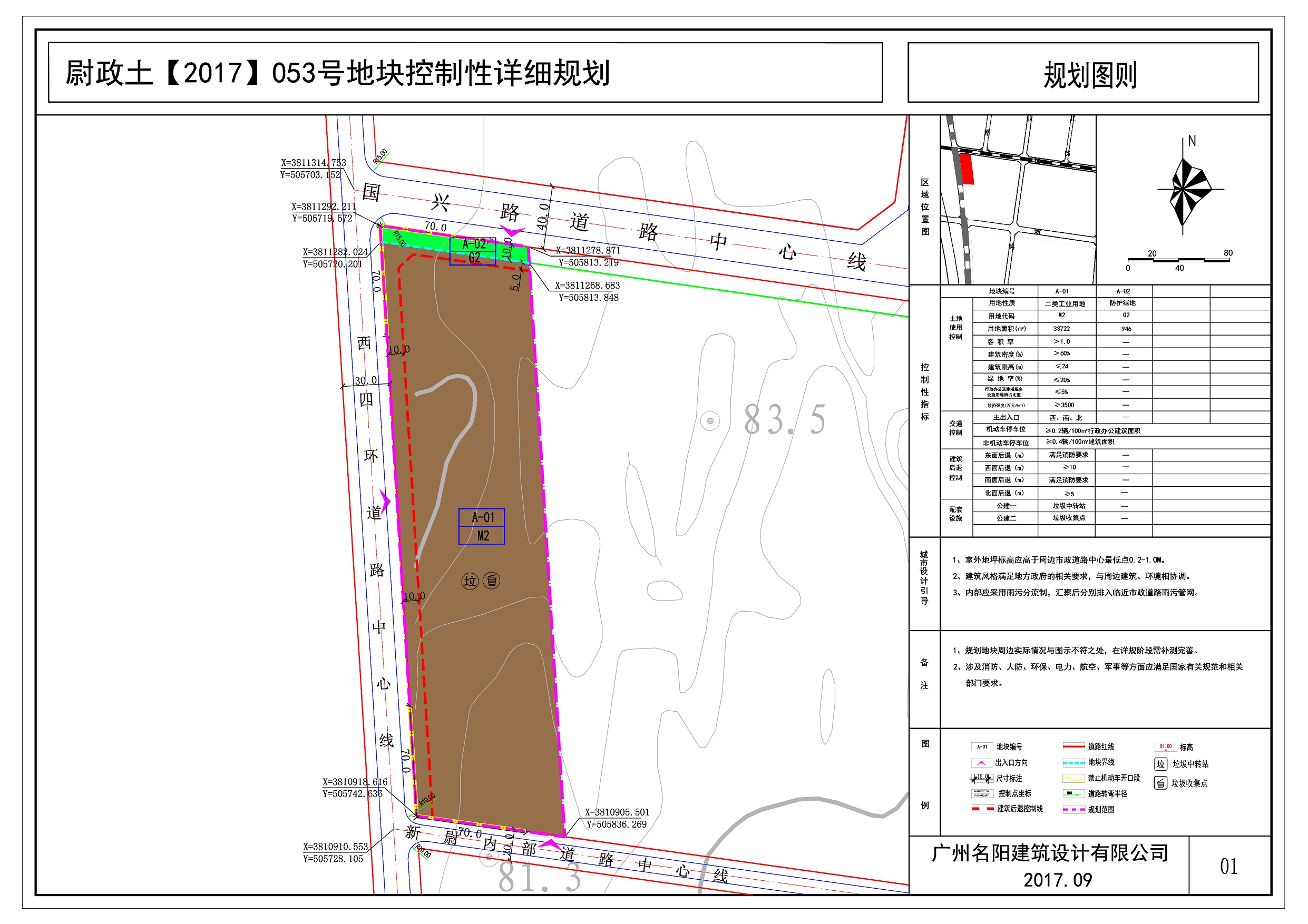 尉政土【2017】053号地块位于尉氏县新尉工业园区国兴路与规划西四环交叉口东南角,主要用地性质为二类工业用地。详见附图“尉政土【2017】053号地块控制性详细规划·规划图则”。